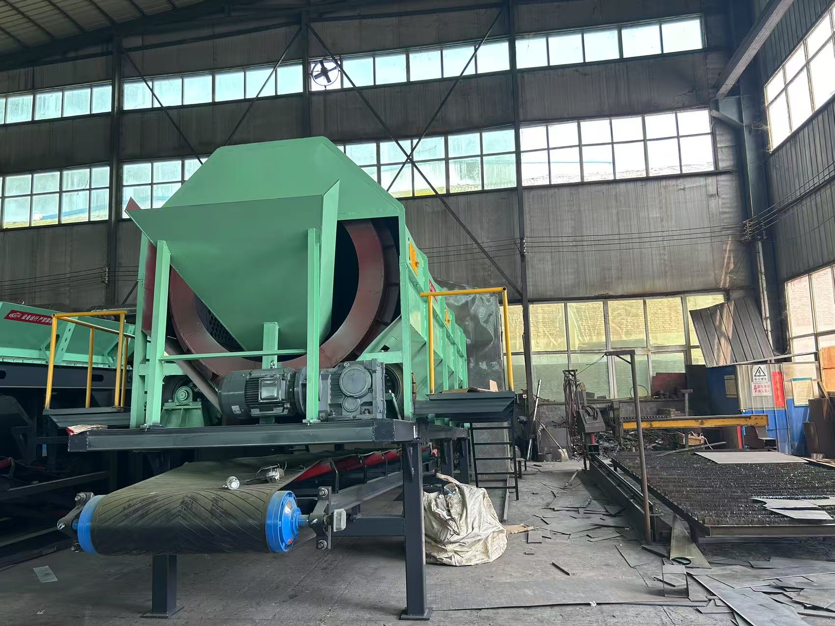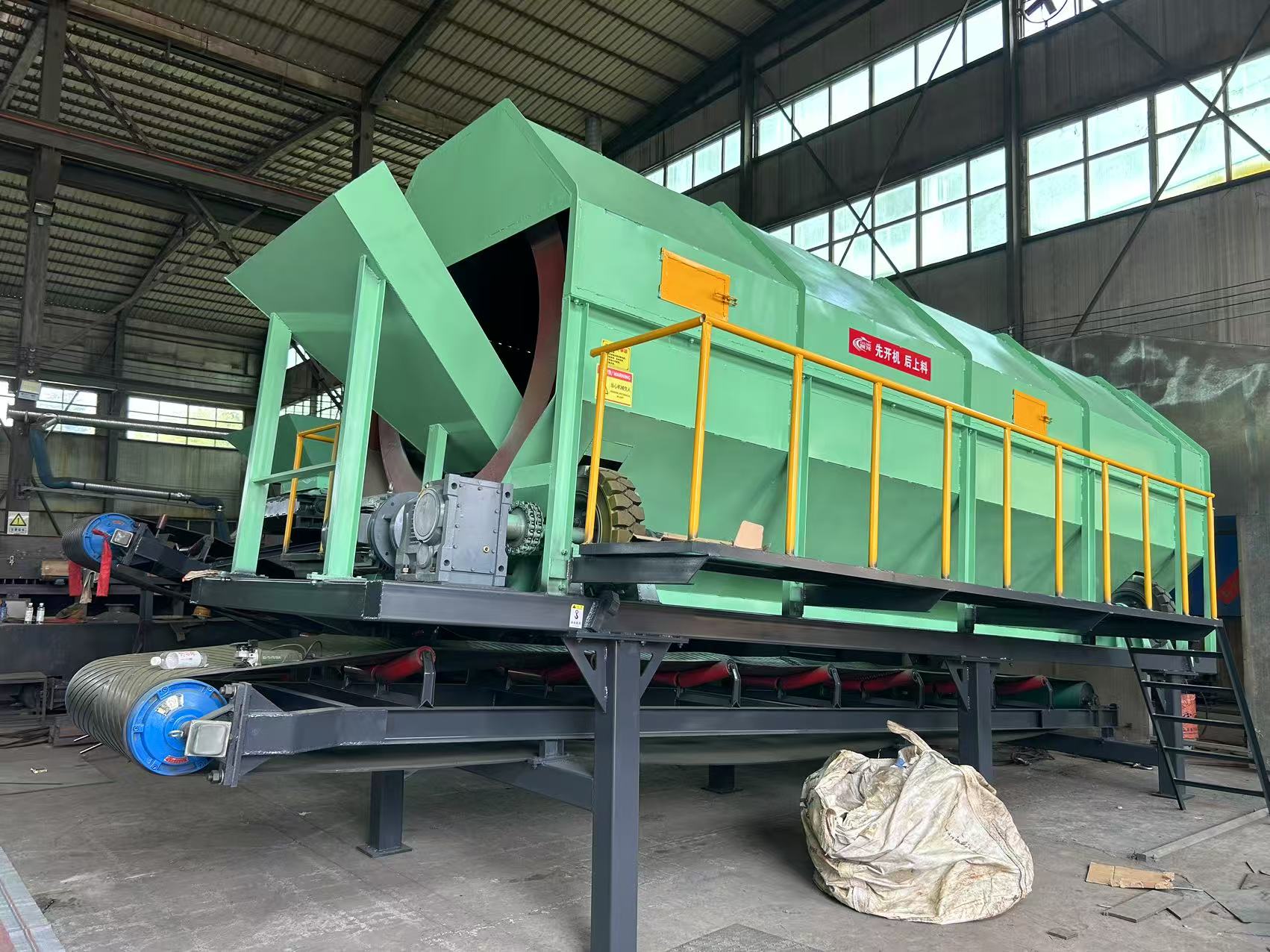 無軸滾筒篩是通過長鼓的孔尺寸來分類廢物。不同尺寸的孔分選不同類型的材料(對沙子,碎玻璃,陶瓷和石材等惰性小于80mm,可回收塑料為80mm至200mm,紙和大塑料為200mm至300mm)。各個零件分別具有比篩網(wǎng)孔的直徑小的尺寸的零件落到機器的底部,尺寸大于篩網(wǎng)直徑的零件在機器的上方向前移動,運動時,沿出入方向落入排料斗,排向周圍環(huán)境較好。
