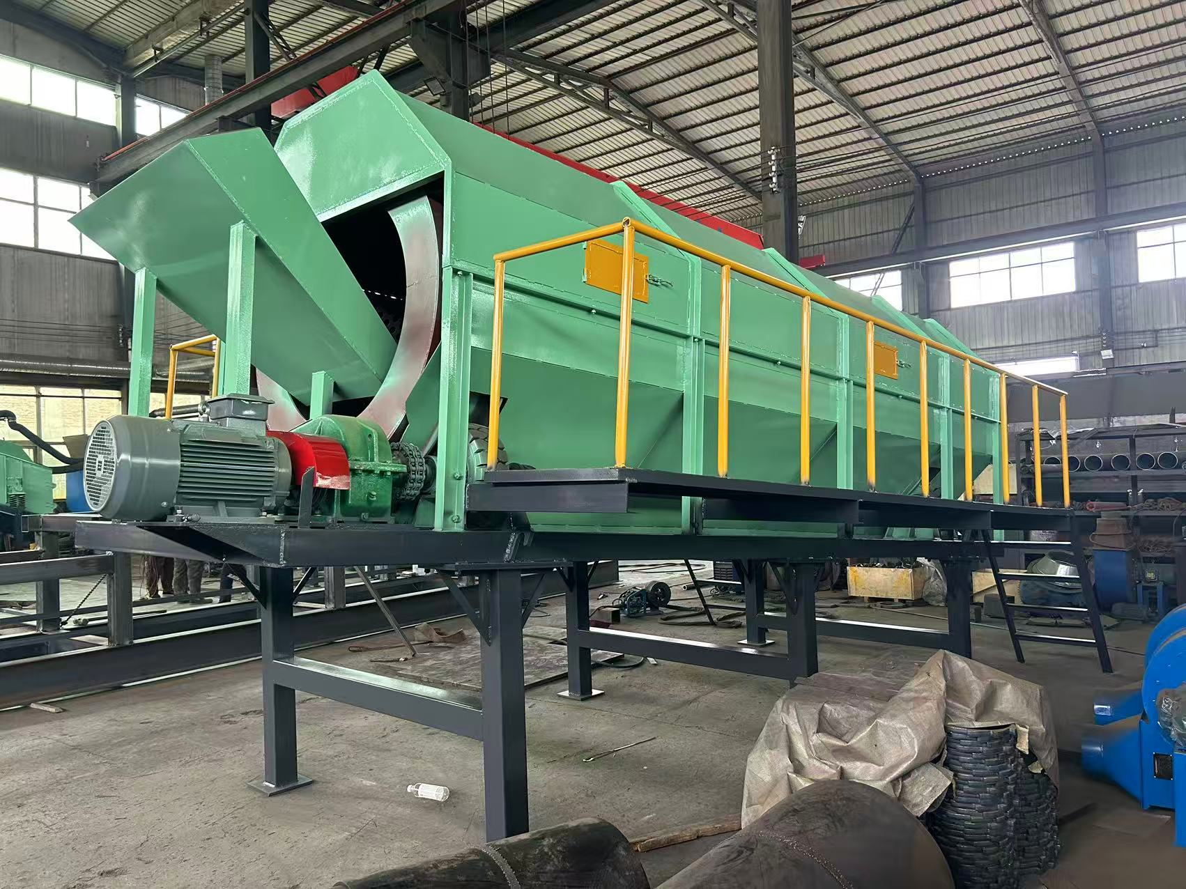 無軸滾筒篩是一種用于固體廢物分選的設(shè)備,它通過滾筒的旋轉(zhuǎn)和內(nèi)置的篩網(wǎng)來實(shí)現(xiàn)不同大小或性質(zhì)的垃圾分離。這種設(shè)備通常由電機(jī)驅(qū)動(dòng),能夠自動(dòng)對(duì)輸入的垃圾進(jìn)行篩選,將可回收物與不可回收物分開,提高垃圾資源化利用率。